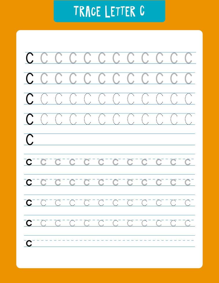 Education worksheet designed to help preschool and kindergarten students practice tracing the letter c. the sheet features multiple rows of uppercase and lowercase c letters with guidelines for better handwriting improvement. Pro Vector