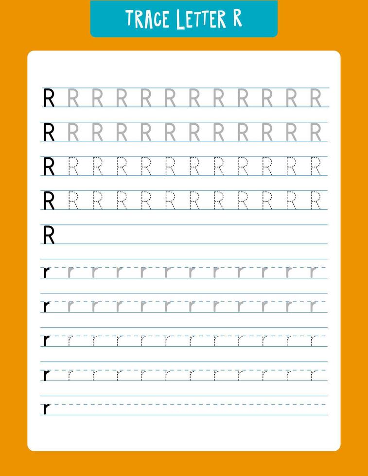 Alphabet learning worksheet focused on the letter r, designed for preschool and kindergarten children to enhance handwriting skills. features multiple traceable versions of the letter r, offering practice in letter recognition and writing proficiency. Pro Vector