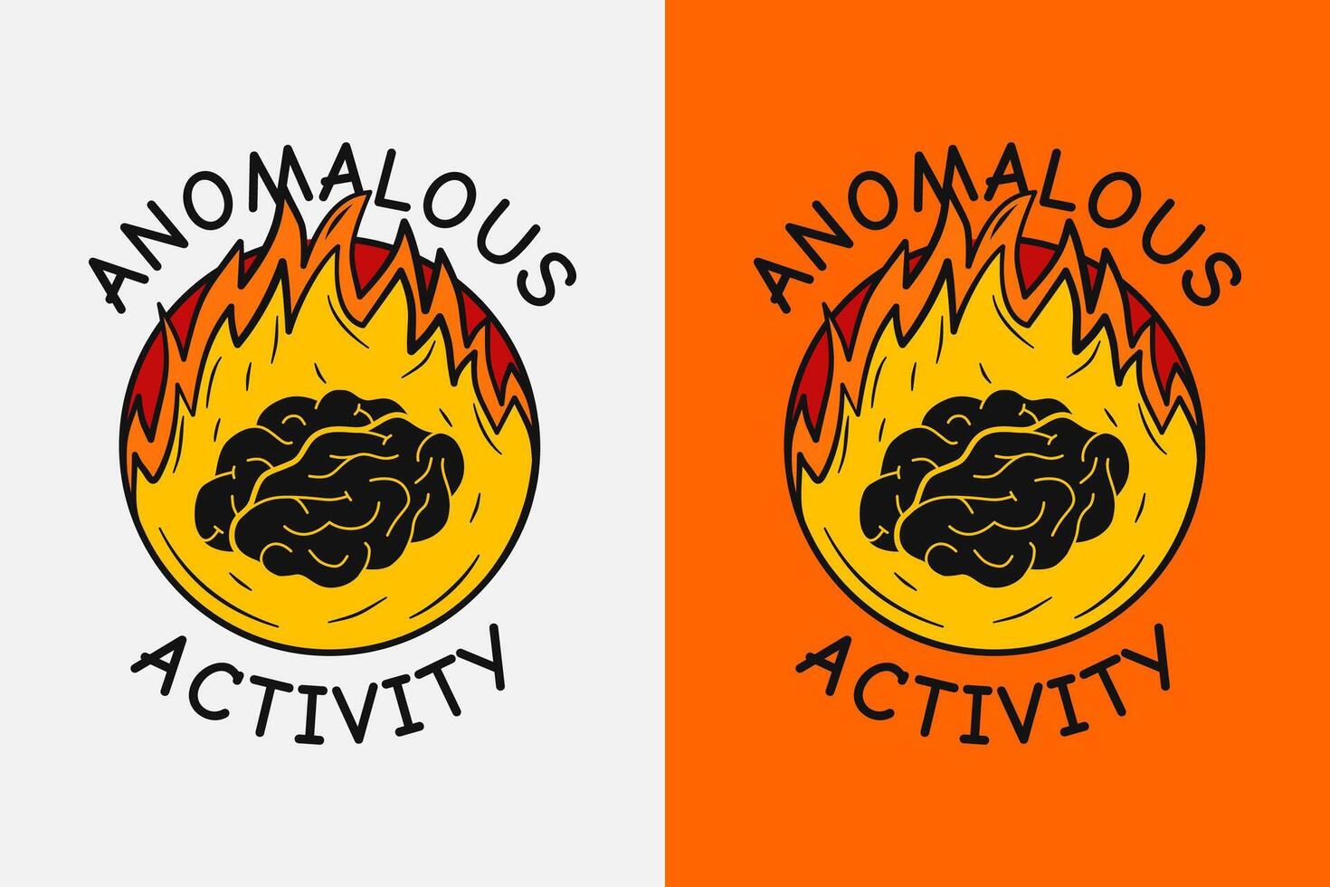 Cartoonist anomalous activity text. Depiction of the brain with the surroundings on fire showing intense activity throughout the brain. Pro Vector