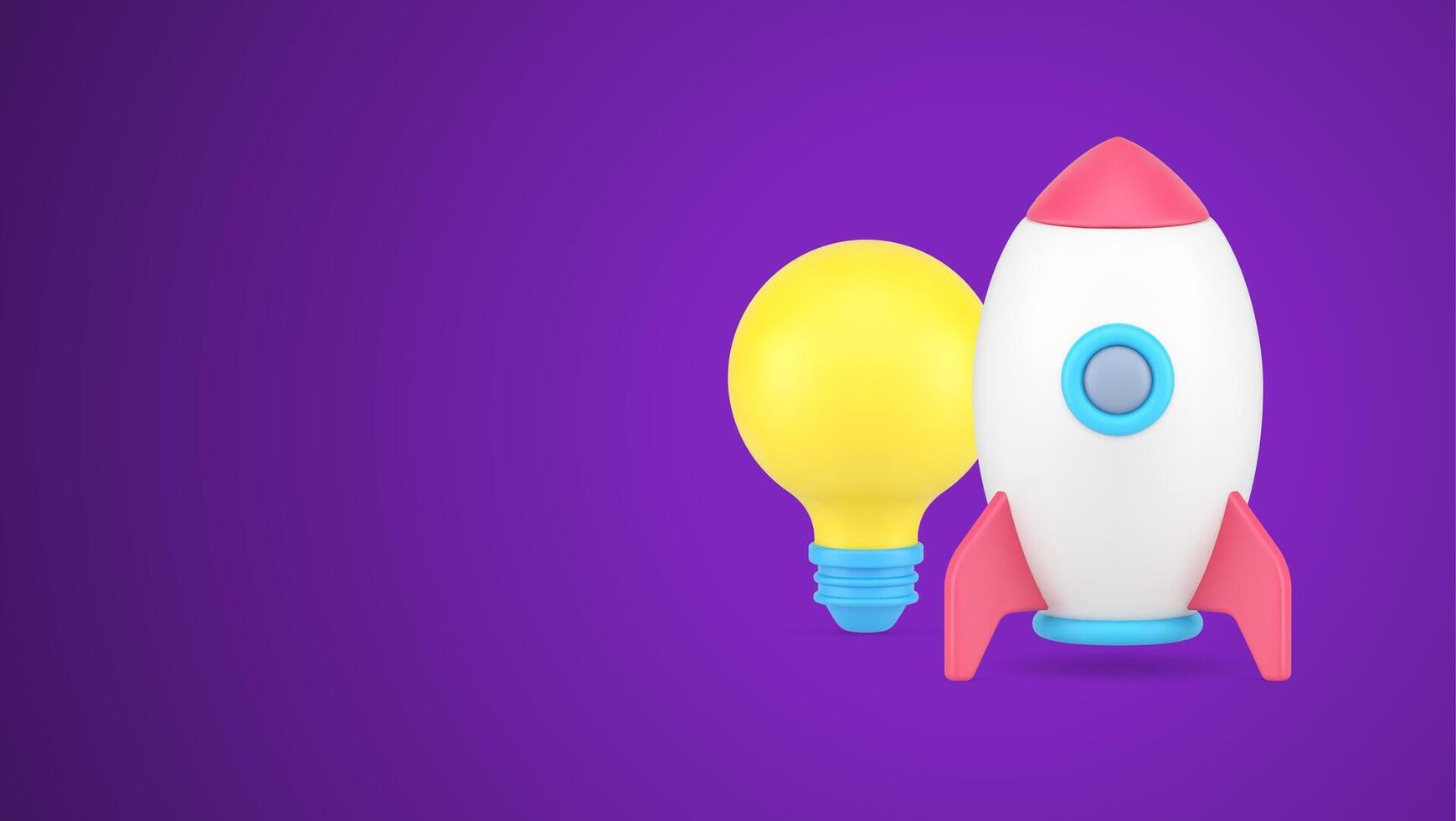 Startup business innovation idea launching spaceship illuminated light bulb 3d icon Pro Vector