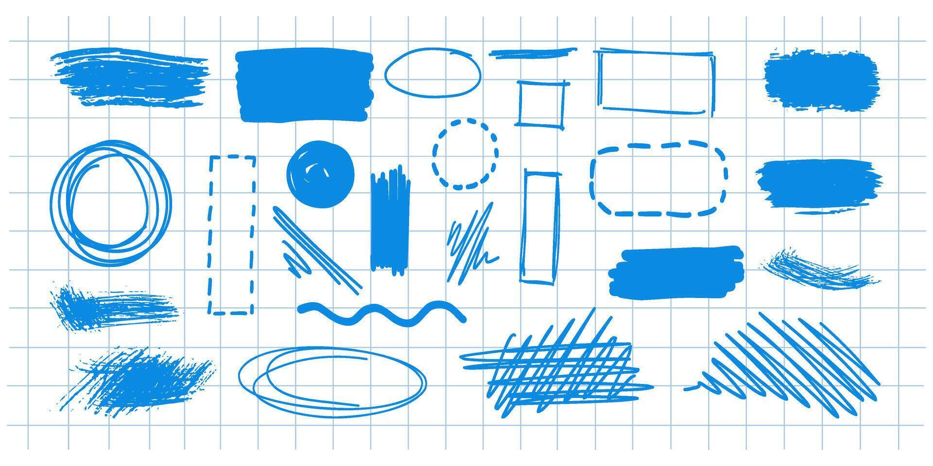Hand-draw doodle frame set. Scribble elements. Circle, box, oval, square, wave, line, rectangle. Brush pen, line stroke Pro Vector