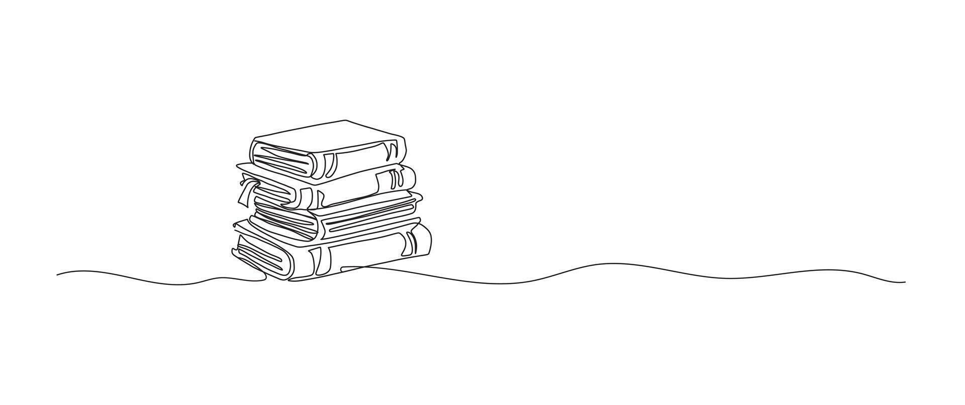 Stack of books continuous one line drawing, single line art element, minimalist sketch line illustration, back to school concept Pro Vector