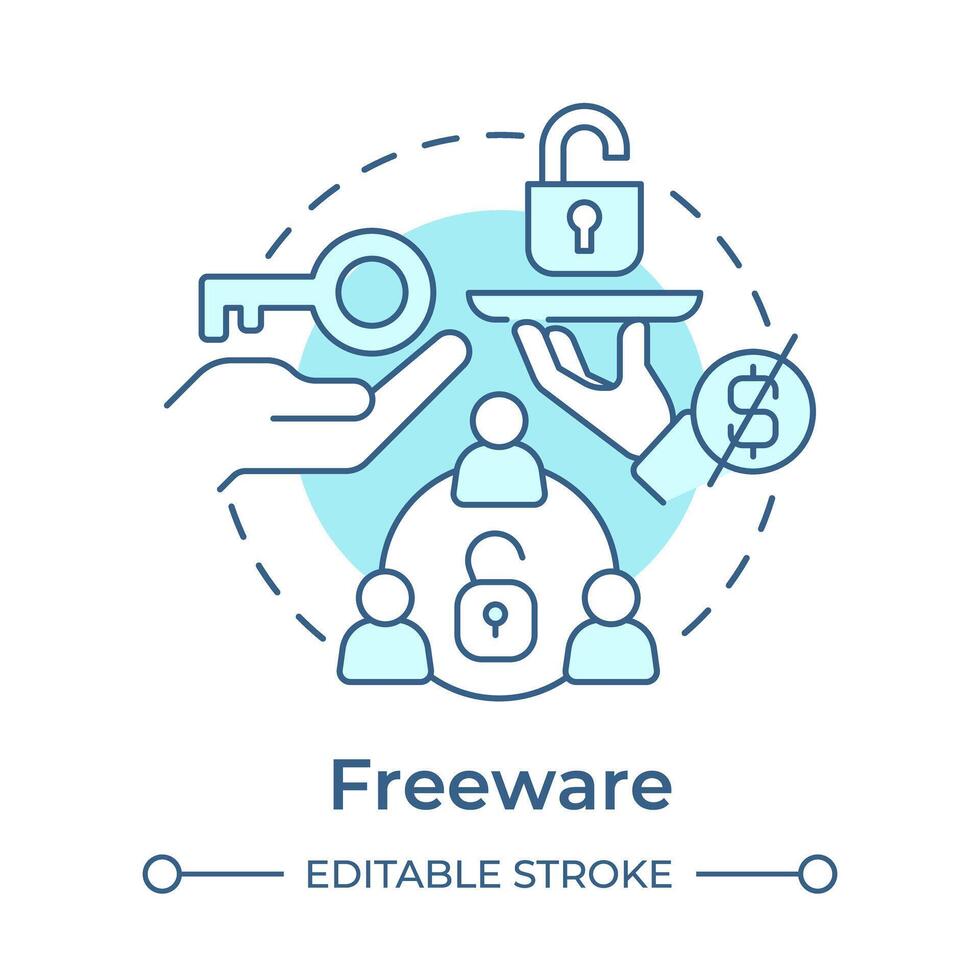 Freeware soft blue concept icon. Customer service, usage tracking. Software licensing. Round shape line illustration. Abstract idea. Graphic design. Easy to use in infographic, presentation Pro Vector