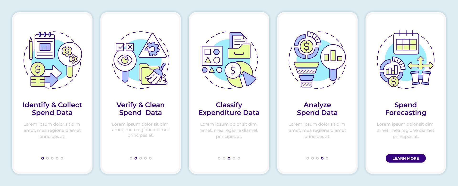 Elements of spend strategy onboarding mobile app screen. Walkthrough 5 steps editable graphic instructions with linear concepts. UI, UX, GUI template Pro Vector
