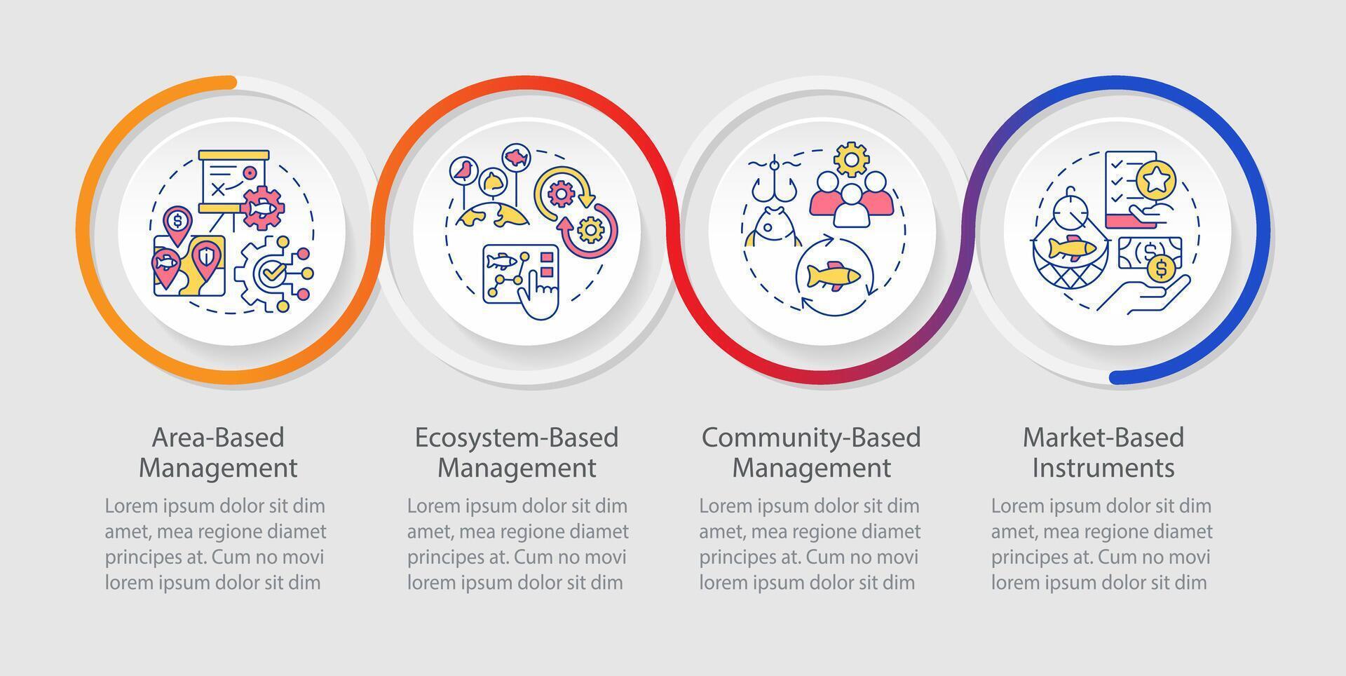 Fisheries regulating strategies loop infographic template. Data visualization with 4 steps. Editable timeline info chart. Workflow layout with line icons Pro Vector