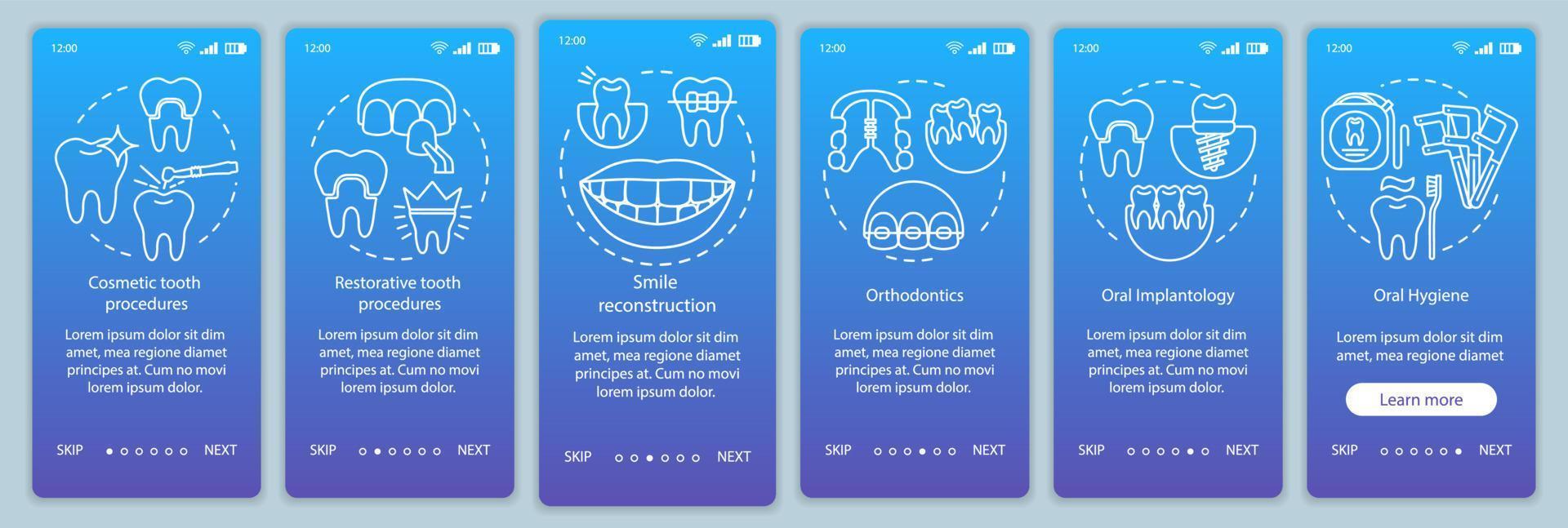 Dental clinic services onboarding mobile app page screen vector template. Stomatological treatment. Walkthrough website steps with linear illustrations. UX, UI, GUI smartphone interface concept Pro Vector and Pro SVG