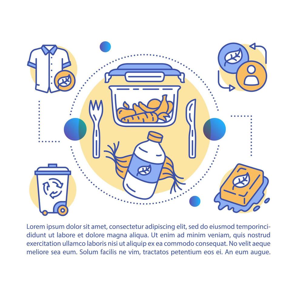 Zero waste lifestyle article page vector template. Brochure, magazine, booklet design element with linear icons and text boxes. Waste management. Print design. Concept illustrations with text space Pro Vector