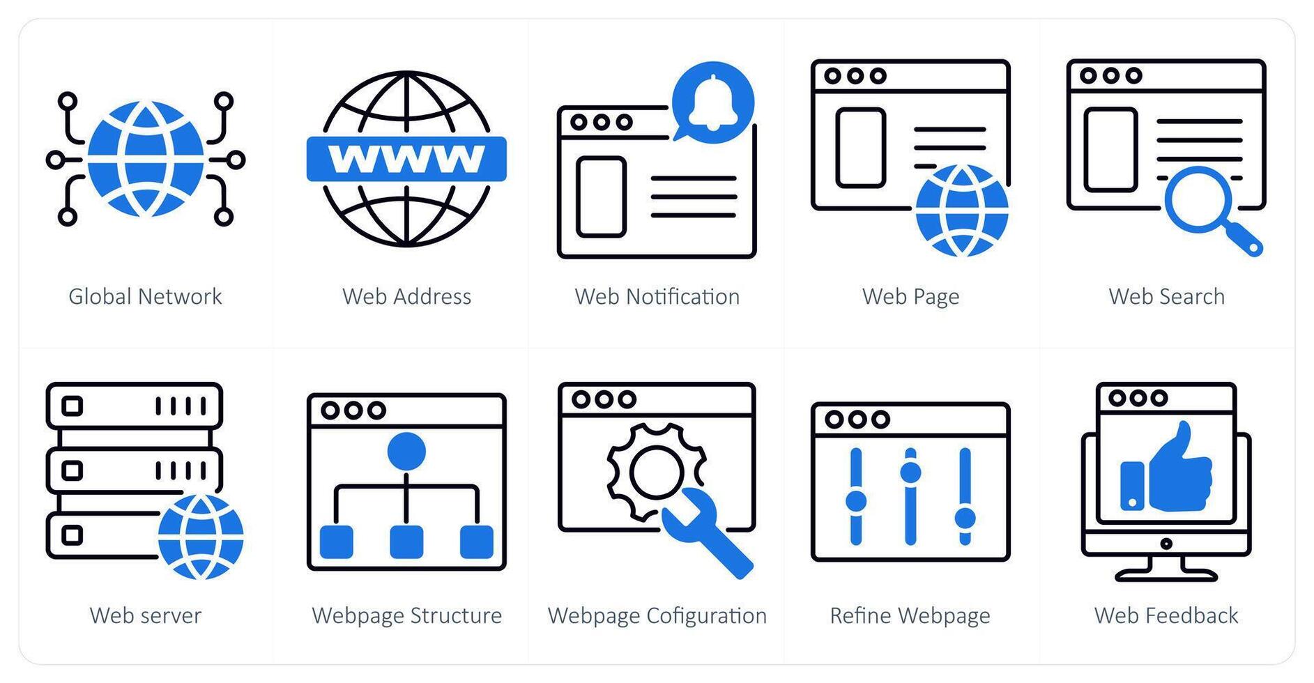 A set of 10 seo icons as global network, web address, web notification Pro Vector