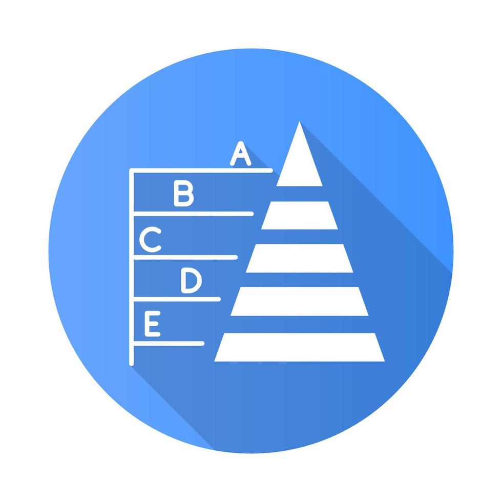 Pyramid graph blue flat design long shadow glyph icon. Information hierarchy chart. Data connection presentation. Business model visualisation. Business report. Vector silhouette illustration Pro Vector