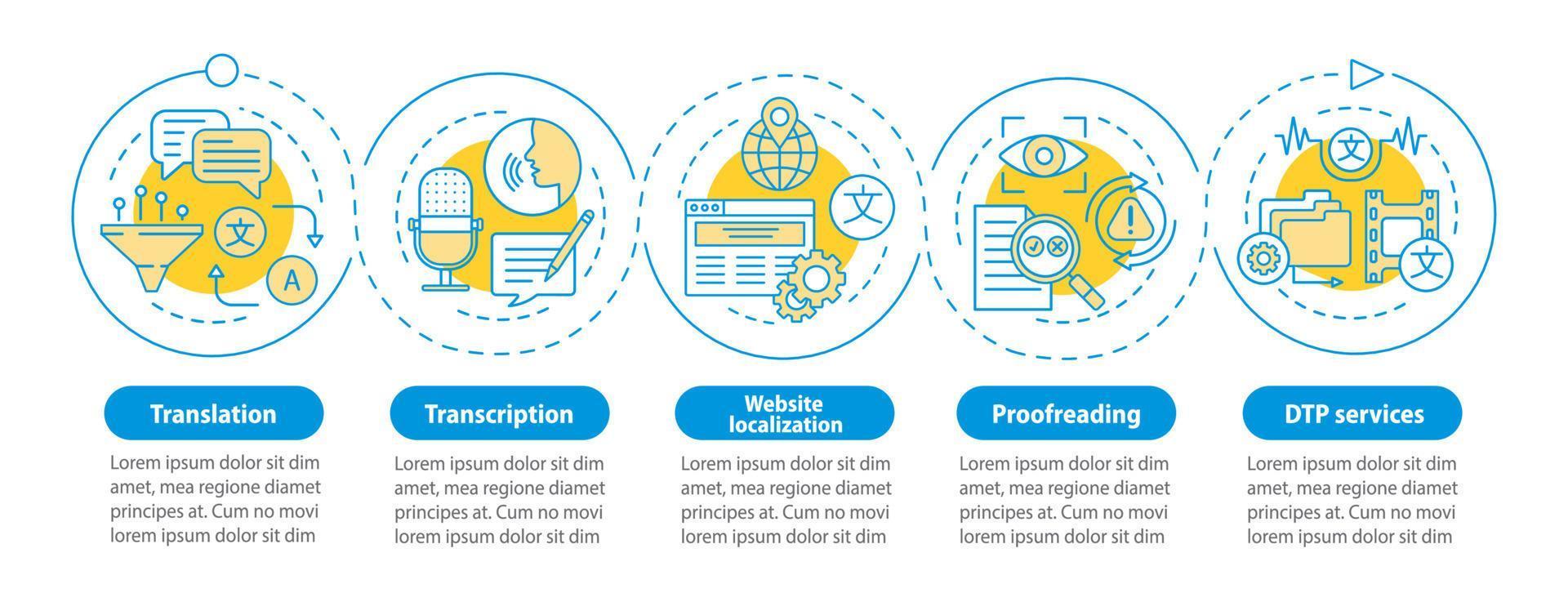 Text services vector infographic template. Business presentation design elements. Data visualization with five steps and options. Process timeline chart. Workflow layout with linear icons Pro Vector