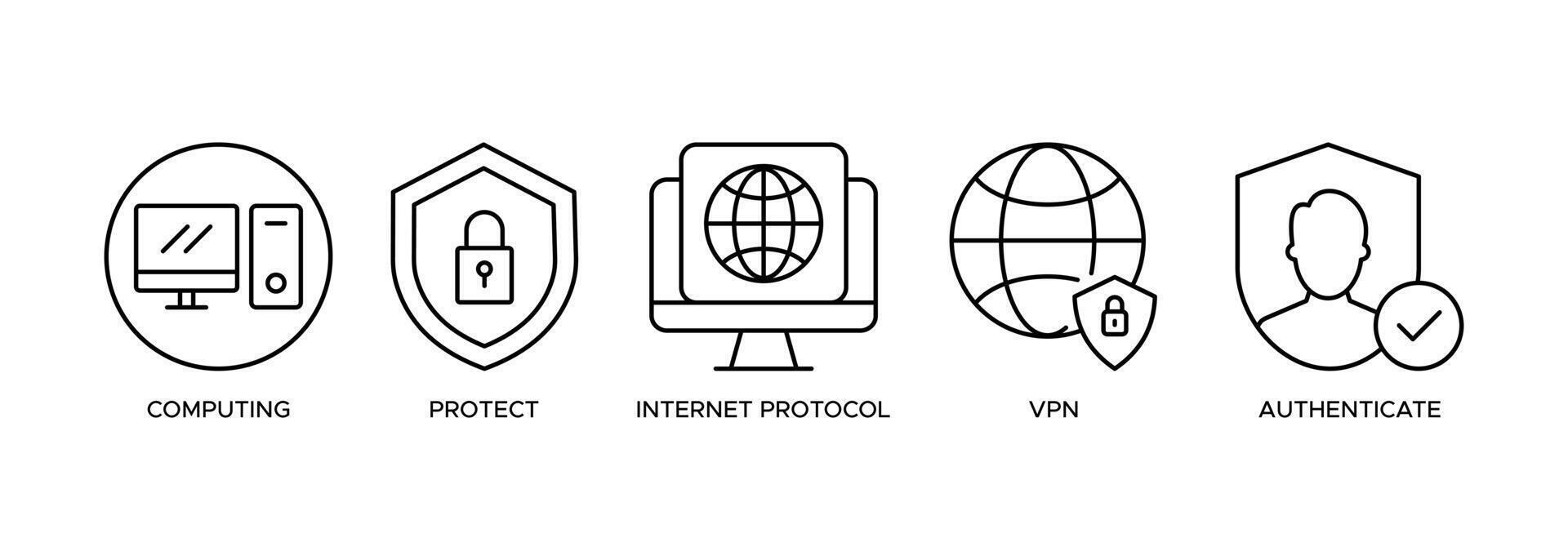 IP SEC banner web icon illustration concept of internet and network security with icon of cloud computing, protect,VPN, authenticate and internet Pro Vector