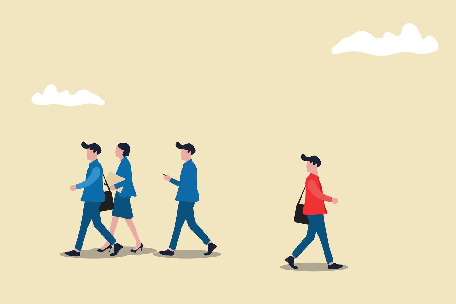 Businessman has to make decision which way to go for his success, Business team or partner go different way, Different or unique concept Pro Vector