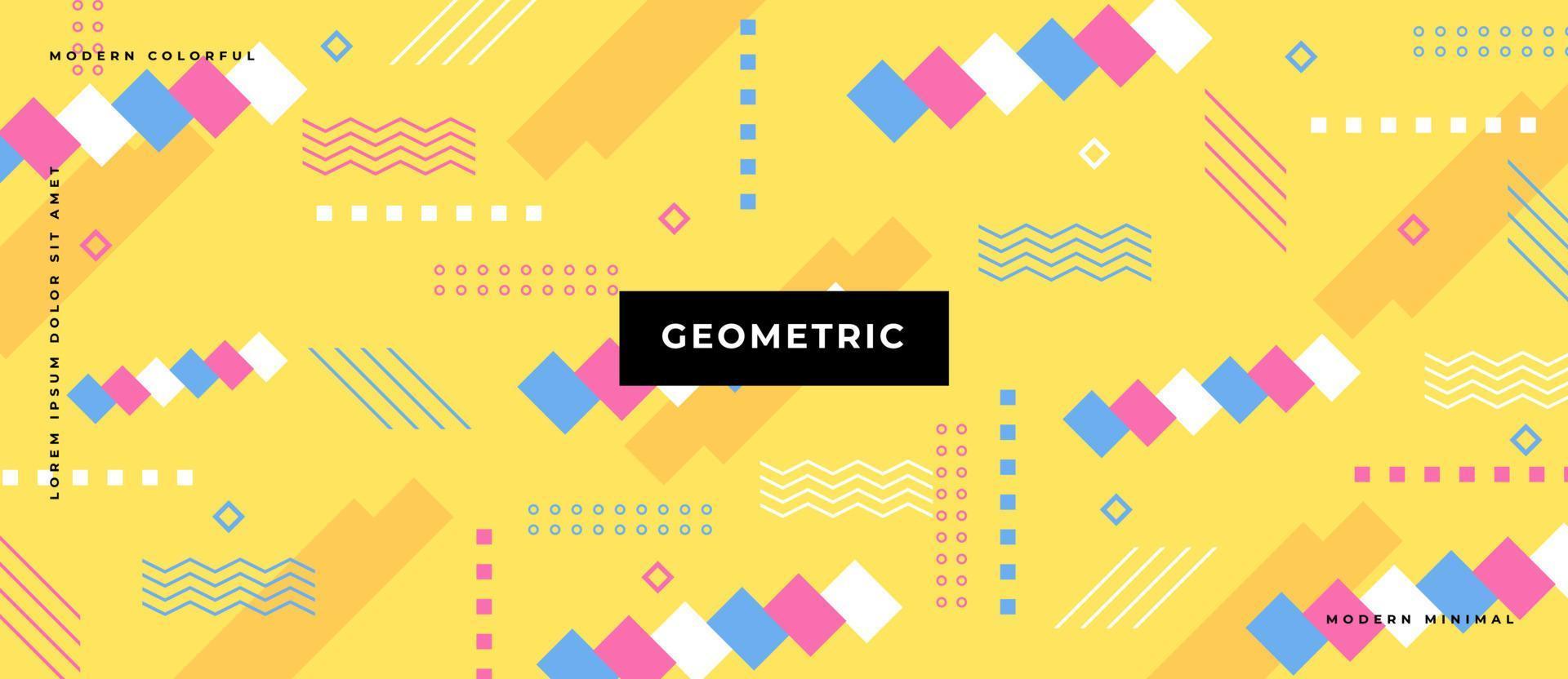 Memphis style Minimal geometric lines texture and dotted pop seamless pattern on yellow background. vector
