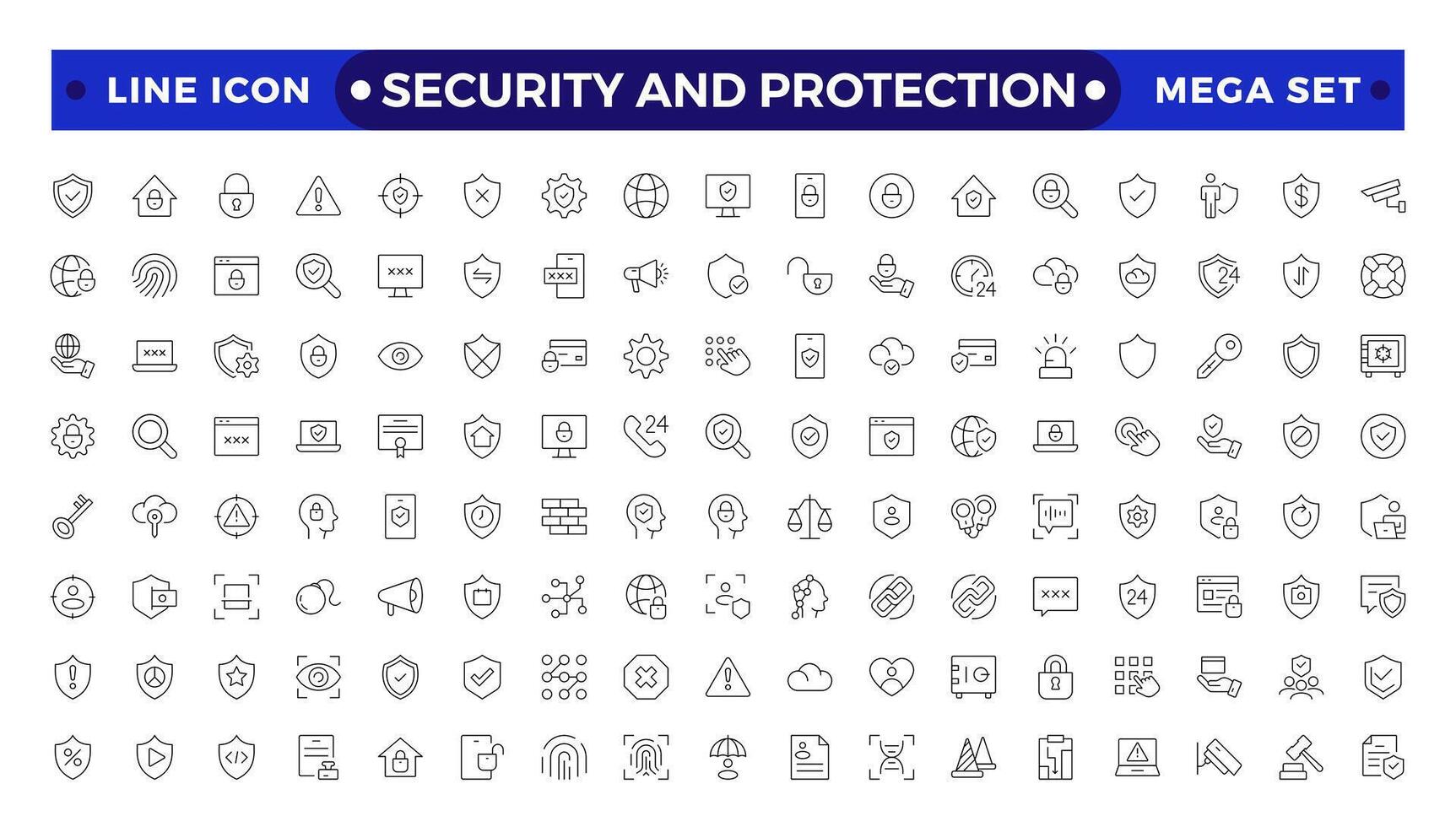 Security and Protection outline icon set. Data protection symbol. Secured network icon collection.Safety, security, protection thin line icons.For website marketing design, logo, app, UI, etc. Pro Vector