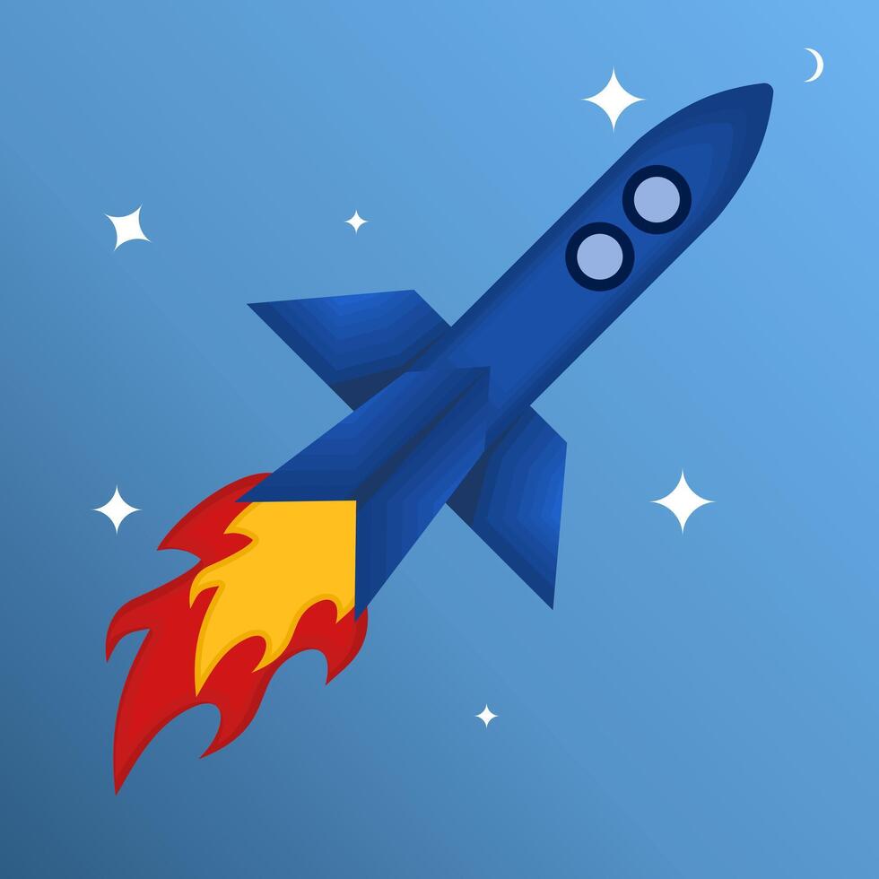 Rocket spaceship concept in flat style. space rocket launch, technology development innovation space rocket symbol, business launch perfect idea startup symbol space shuttle rocket planet icon. Pro Vector