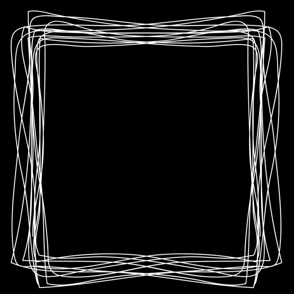 White rectangular frame drawn in doodle style on a black background Pro Vector