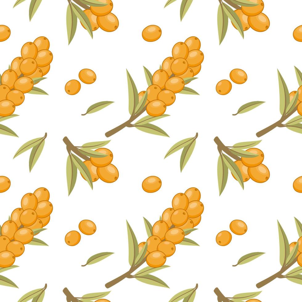 Seamless pattern with sea buckthorn twigs. Pattern for printing on fabric or paper. Pro Vector