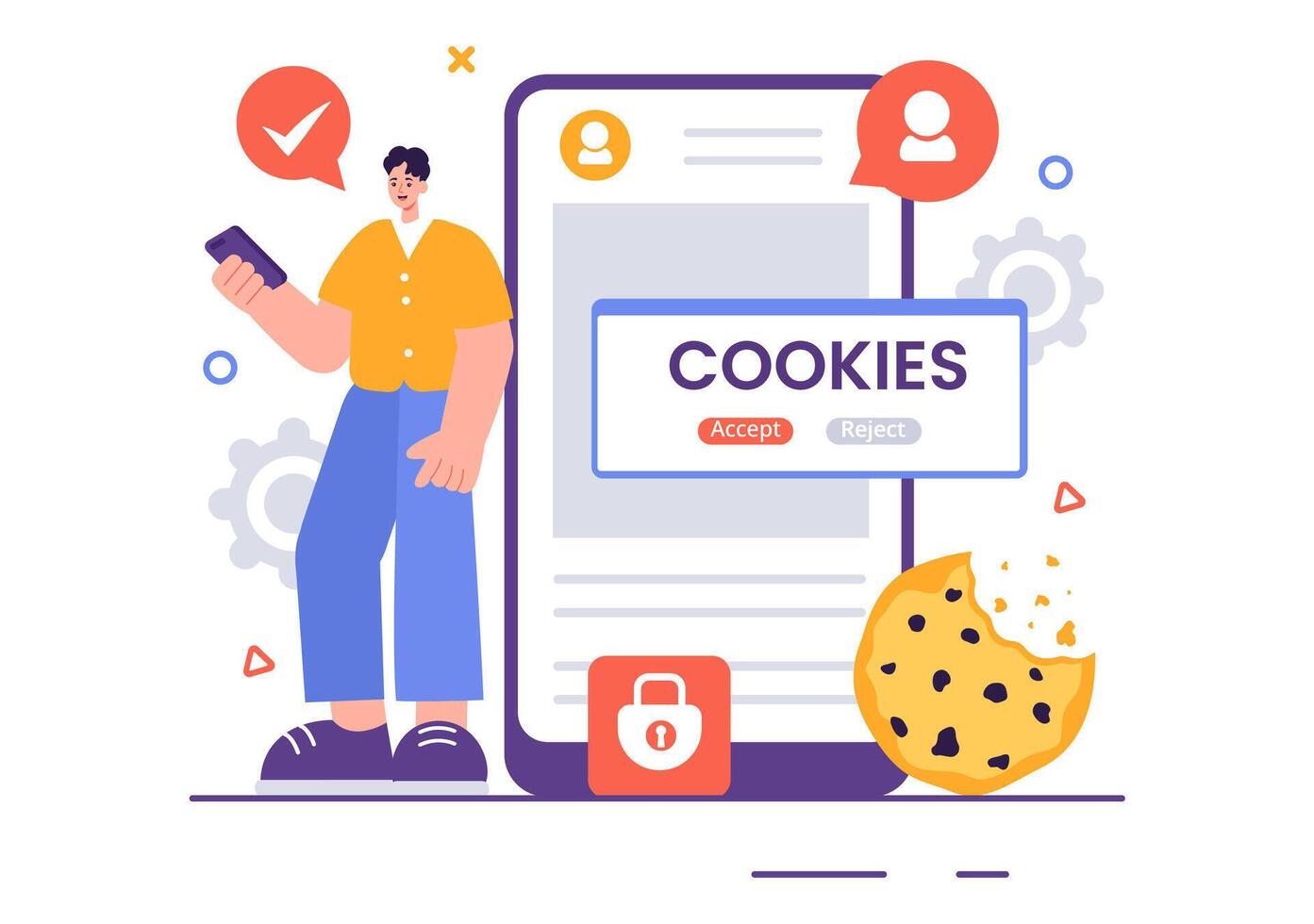 Internet Cookies Technology Illustration with Tracking Cookie Records of Browsing Activity on a Website in a Flat Cartoon Style Background Pro Vector