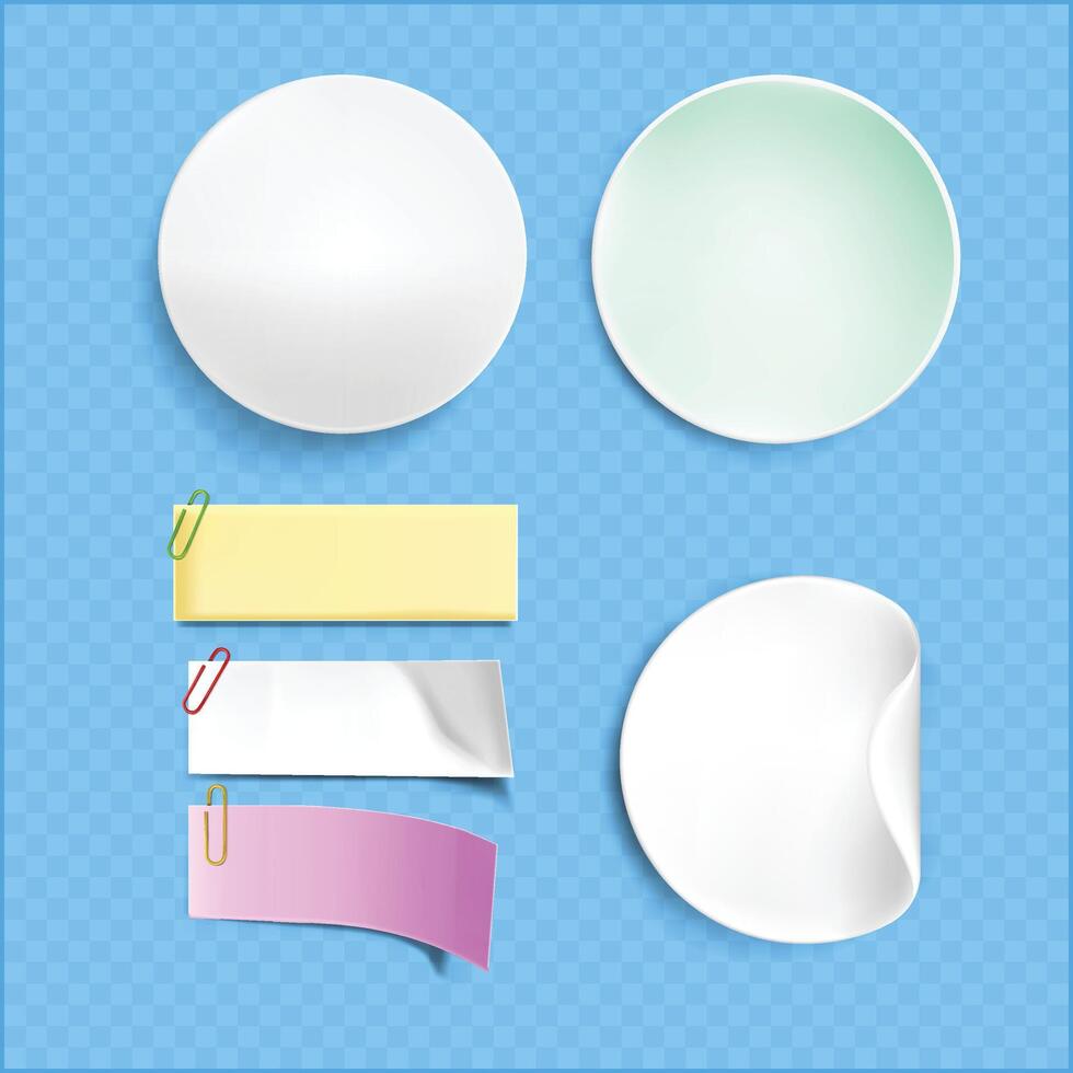 White Paper stickers set of different shapes with shadow and mockup isolated transparent background Pro Vector
