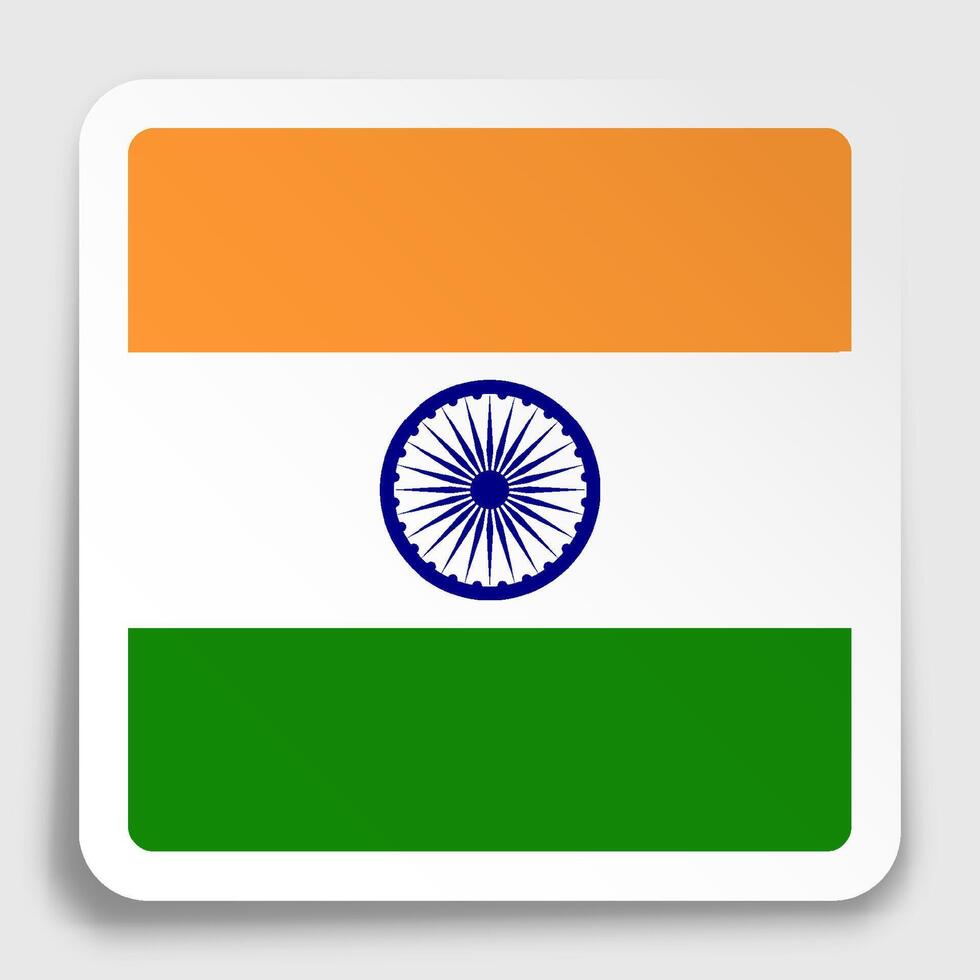 India flag icon on paper square sticker with shadow. Button for mobile application or web. Pro Vector