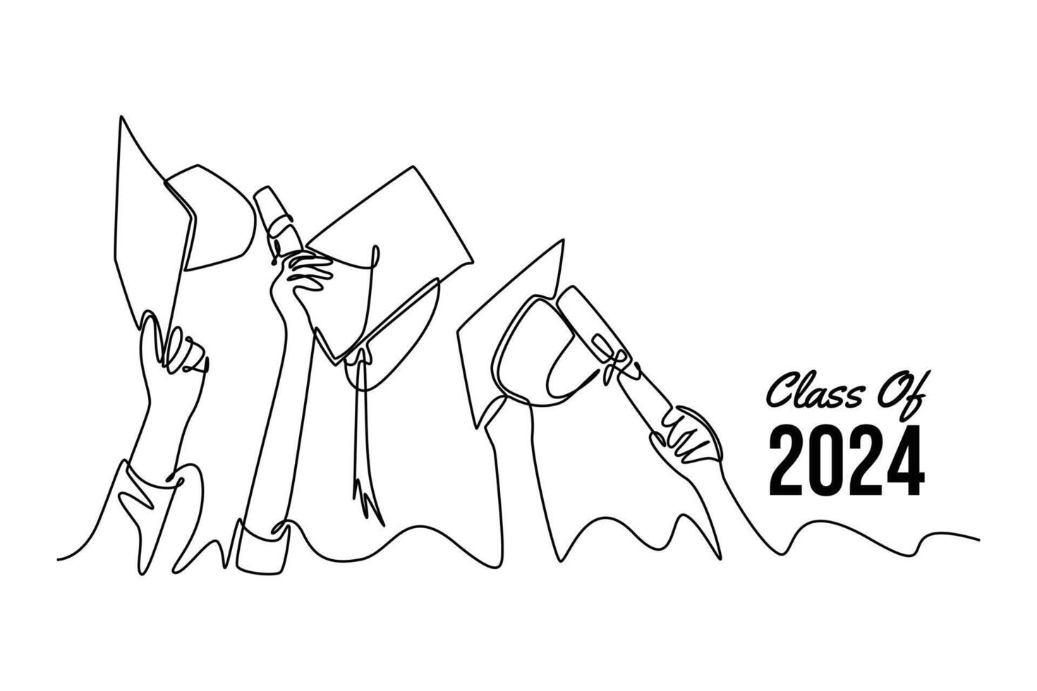 Class of 2024 concept. Single line draw design graphic illustration. Pro Vector