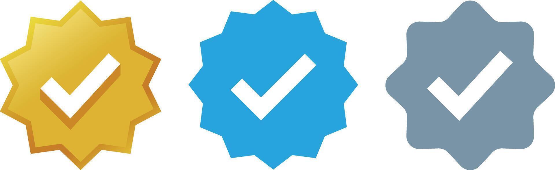 Verification star icon set isolated on white background. Verify badge collection in different shapes in gold gradient, blue and grey colour symbol. Modern, simple, for website design, mobile ui Pro Vector