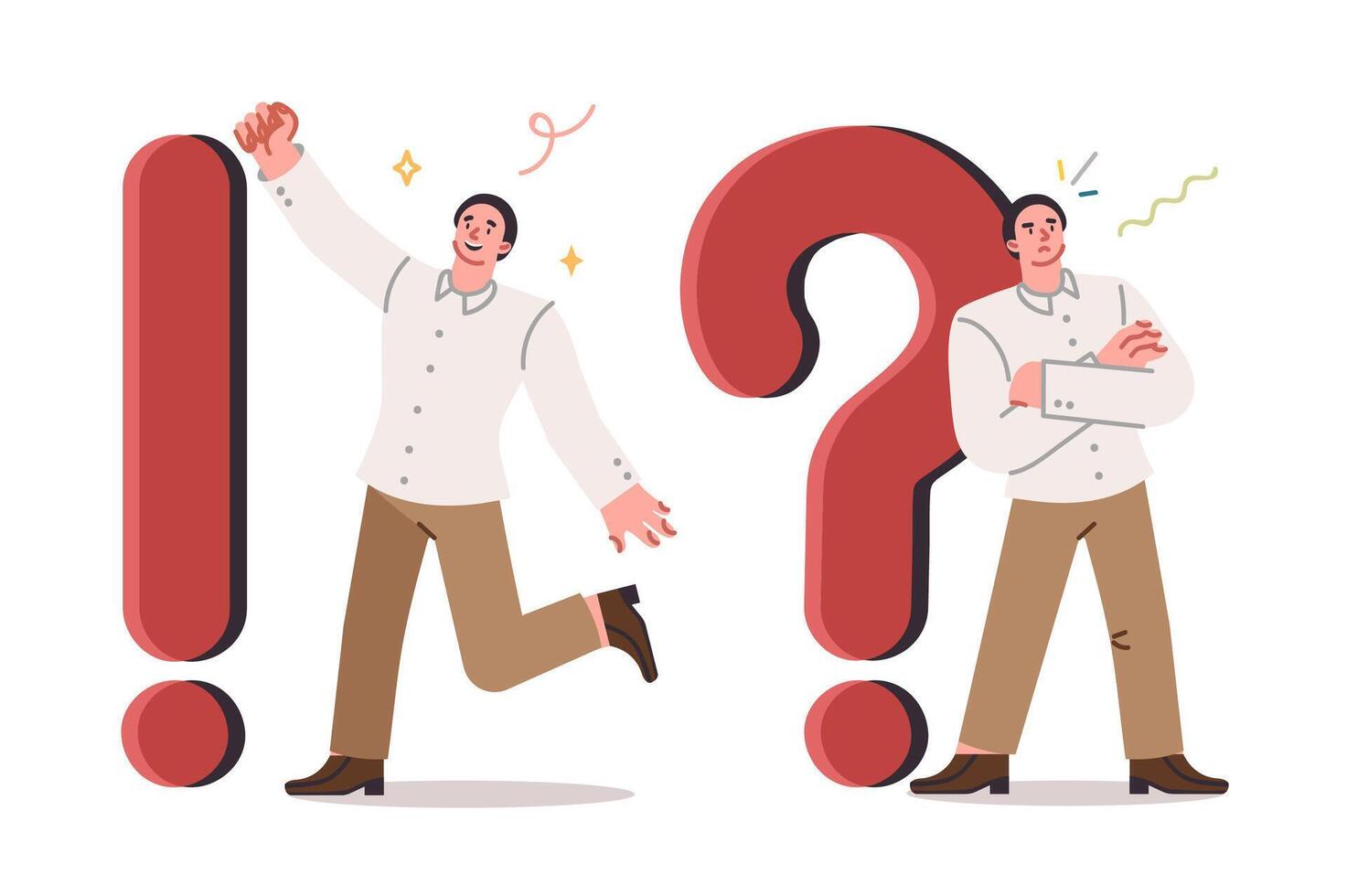 Man who thinks about question finds answer and way out of difficult situation, causes anxiety Pro Vector