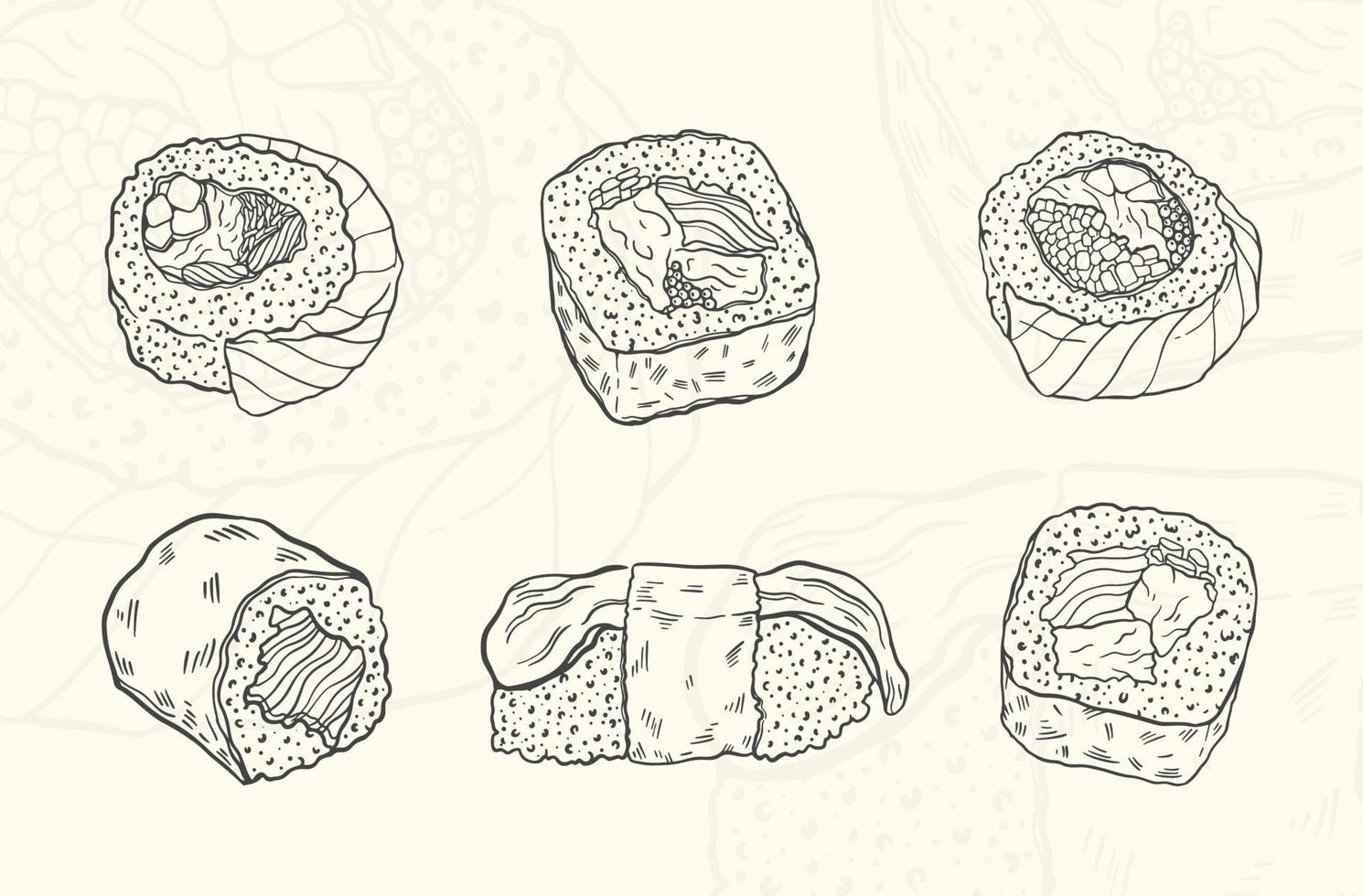 Illustration sushi kit sketch food.Hand drawn element design menu. Isolated object in white background. Pro Vector