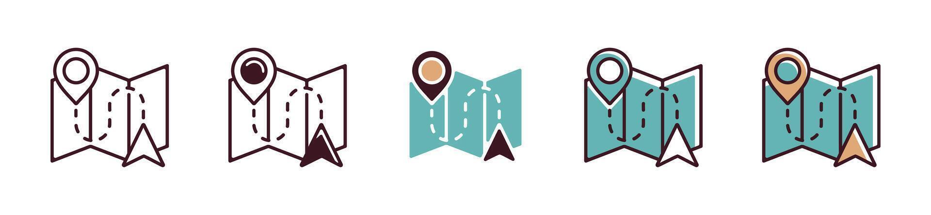 set of map location icon. route guide to marker position gps symbol illustration for web and app Pro Vector