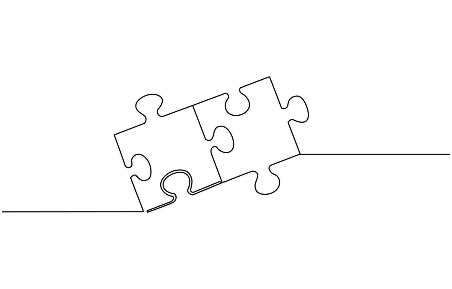 Two connected puzzle pieces of one continuous line drawn. Jigsaw puzzle element. illustration Pro Vector