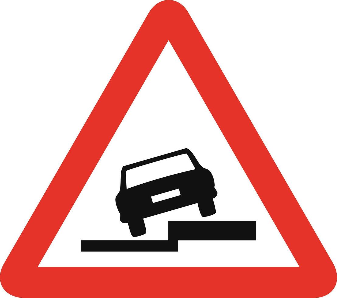 Triangular traffic signal in white and red, isolated on white background. Warning of side slope on the right Pro Vector