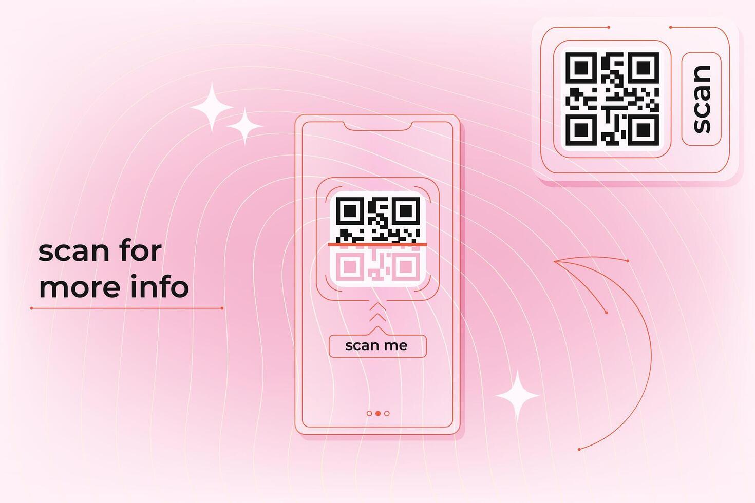 QR code scan with smartphone. Abstract cute pink template. Soft gradient background. Modern outline Y2K. Pro Vector