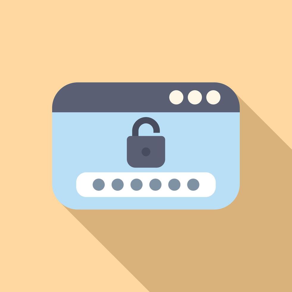 Secure web browser showing unlocked padlock and password field for online security concept Pro Vector
