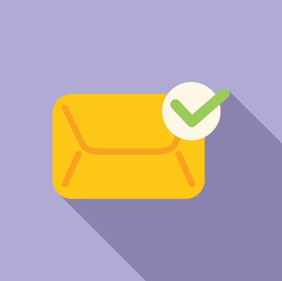Yellow mail envelope with green check mark icon showing received message Pro Vector