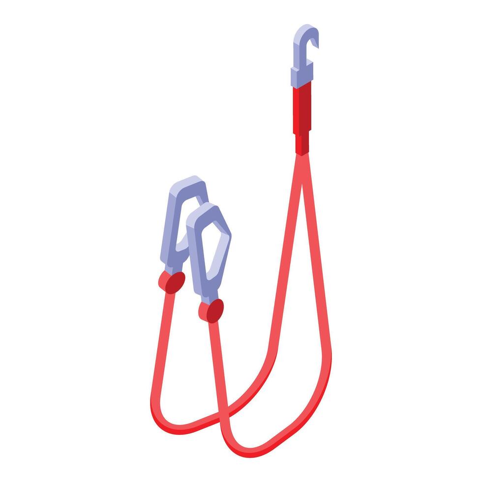 Red bungee cord with metal hooks for fixing something isometric icon Pro Vector