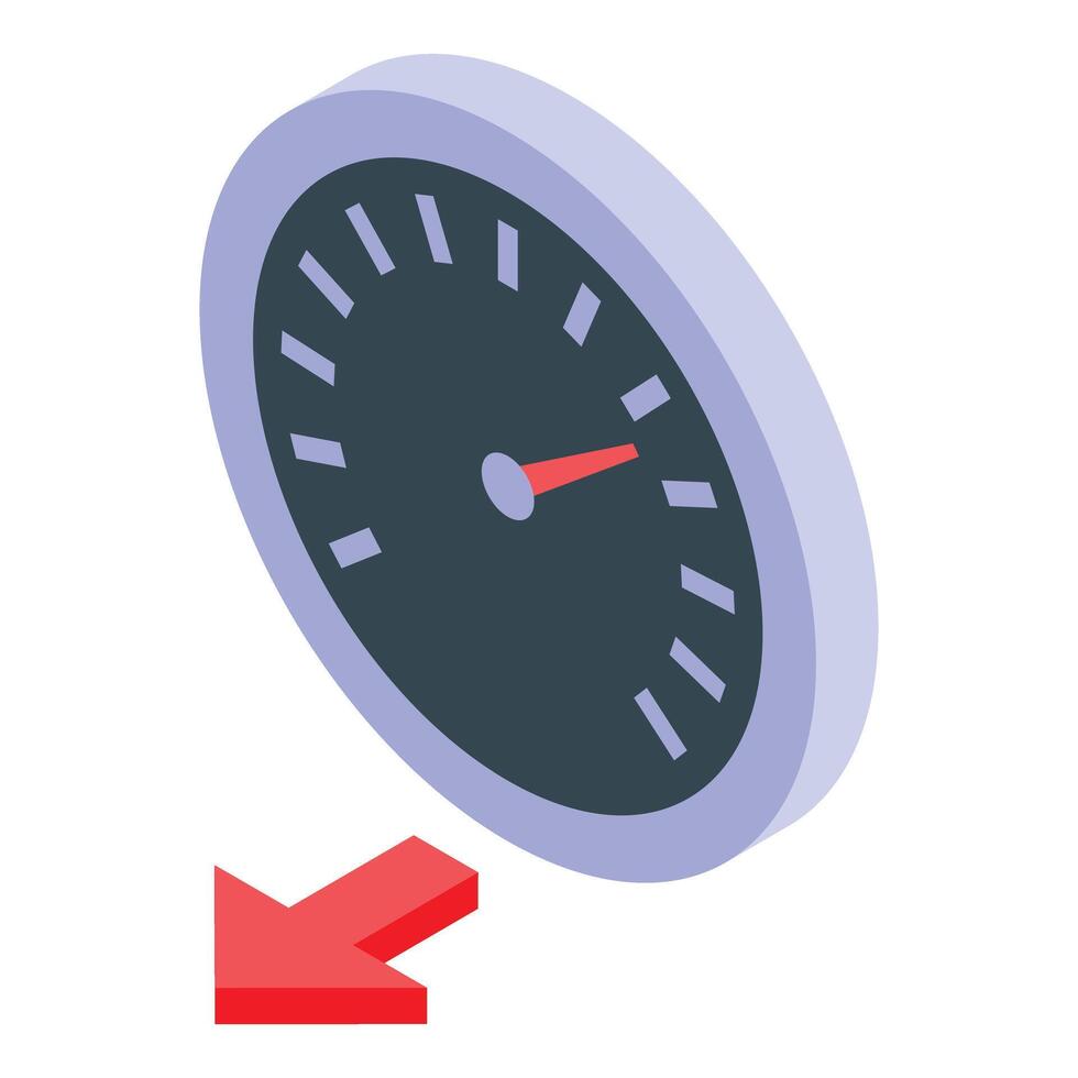 Speedometer showing slow speed with red arrow pointing down Pro Vector