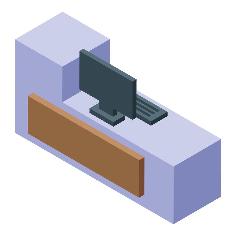 Reception desk with computer showing blank screen for greeting clients Pro Vector