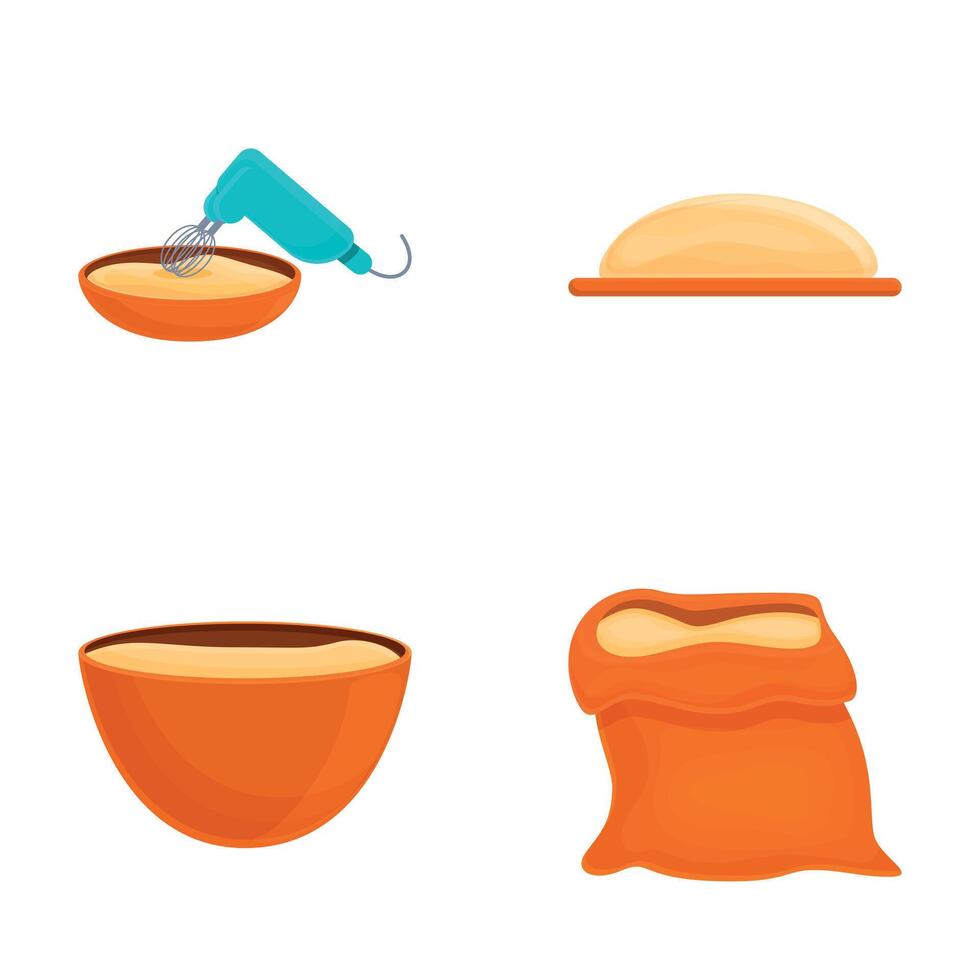 Making bread icons set cartoon . Kneading and rolling out dough process Pro Vector