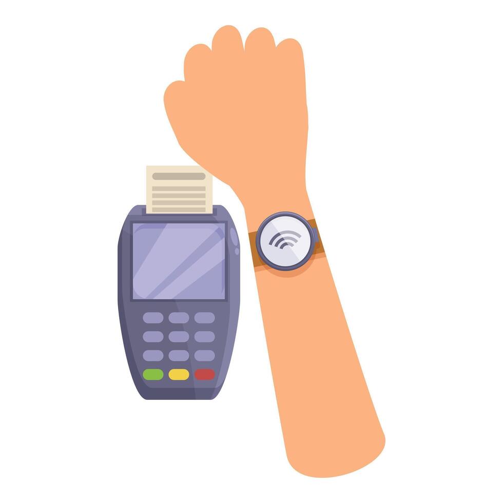 Customer making nfc payment using smartwatch at pos terminal Pro Vector