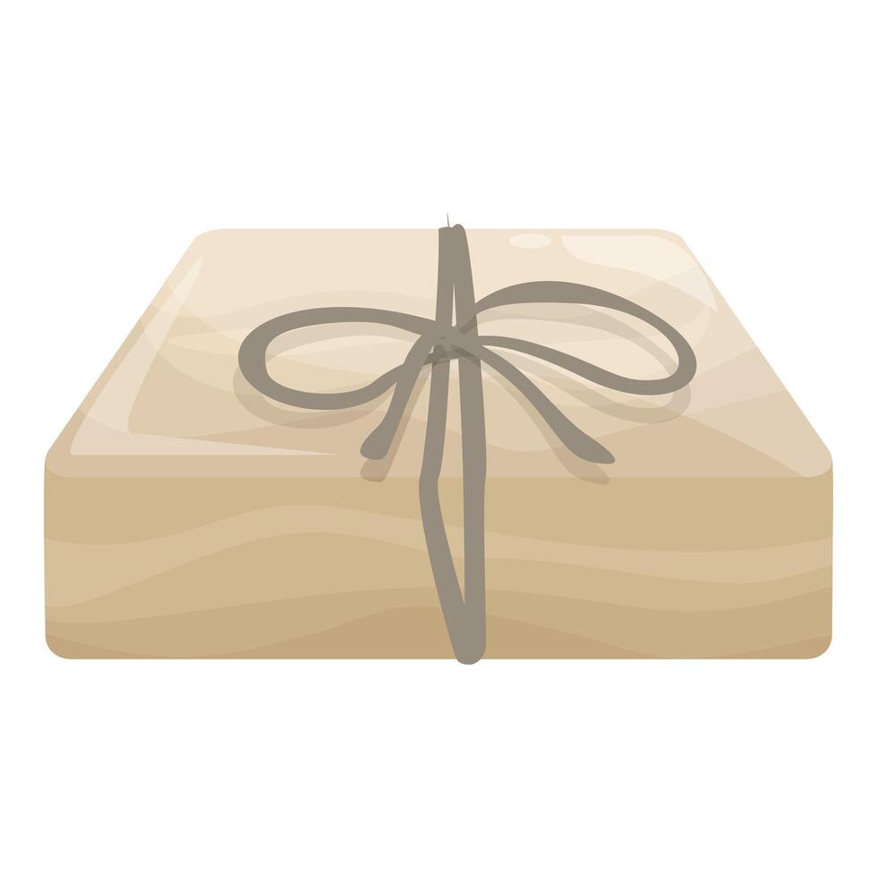 Rectangular cardboard box wrapped with brown string lying on white background Pro Vector