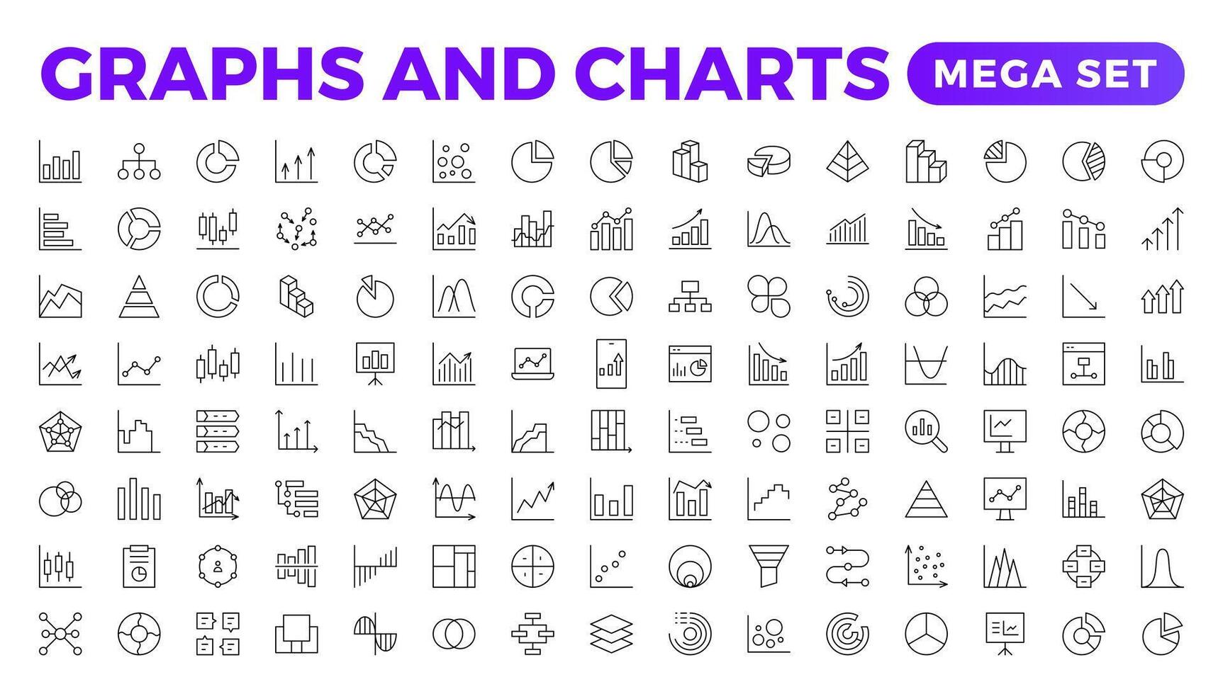 Graphs and charts icon set. Business growing bar graph icons. Statistics and analytics icon. Statistic and data, charts diagrams, money, down or up arrow Pro Vector