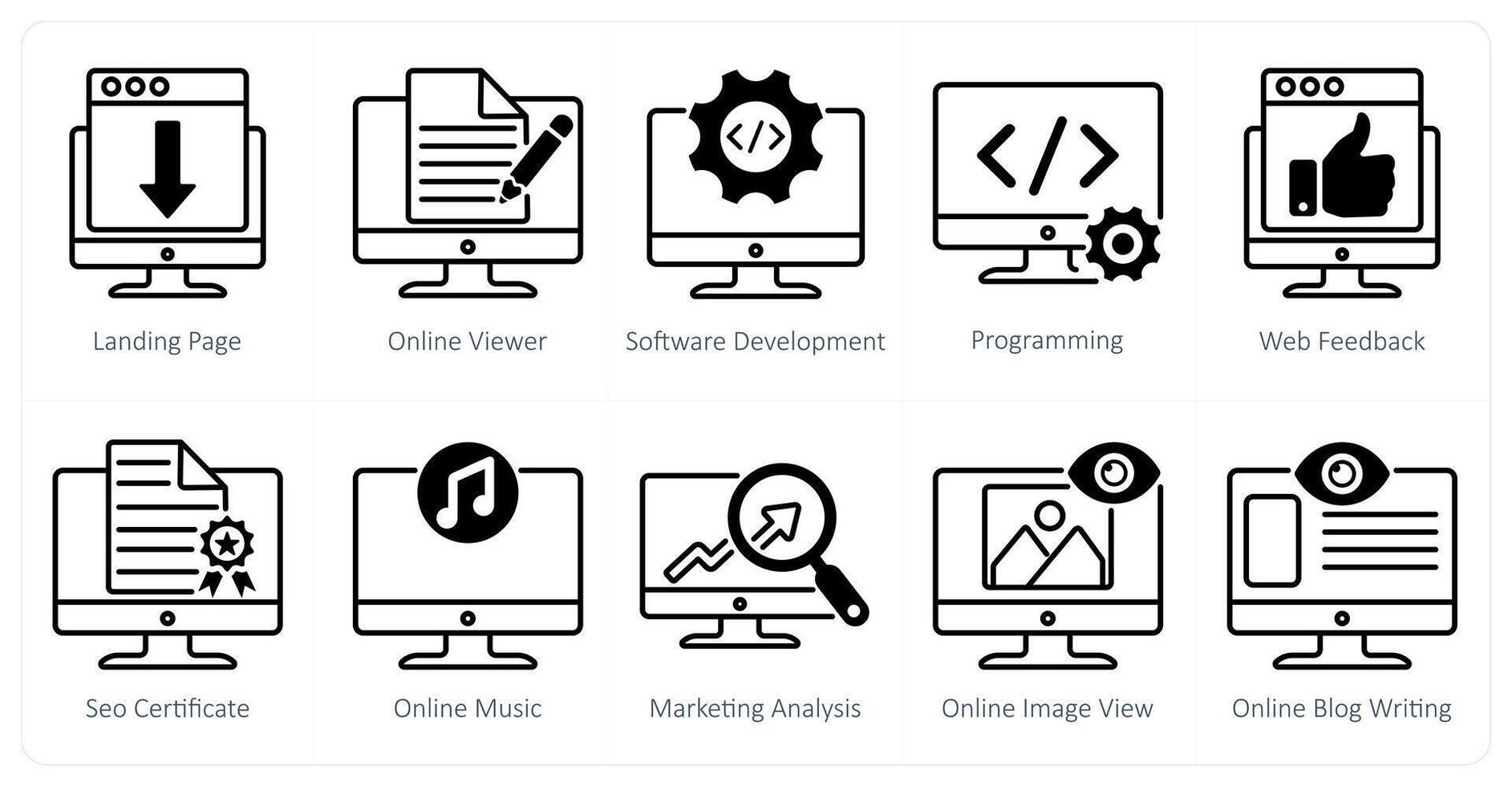 A set of 10 seo icons as landing page, online viewer, software development Pro Vector
