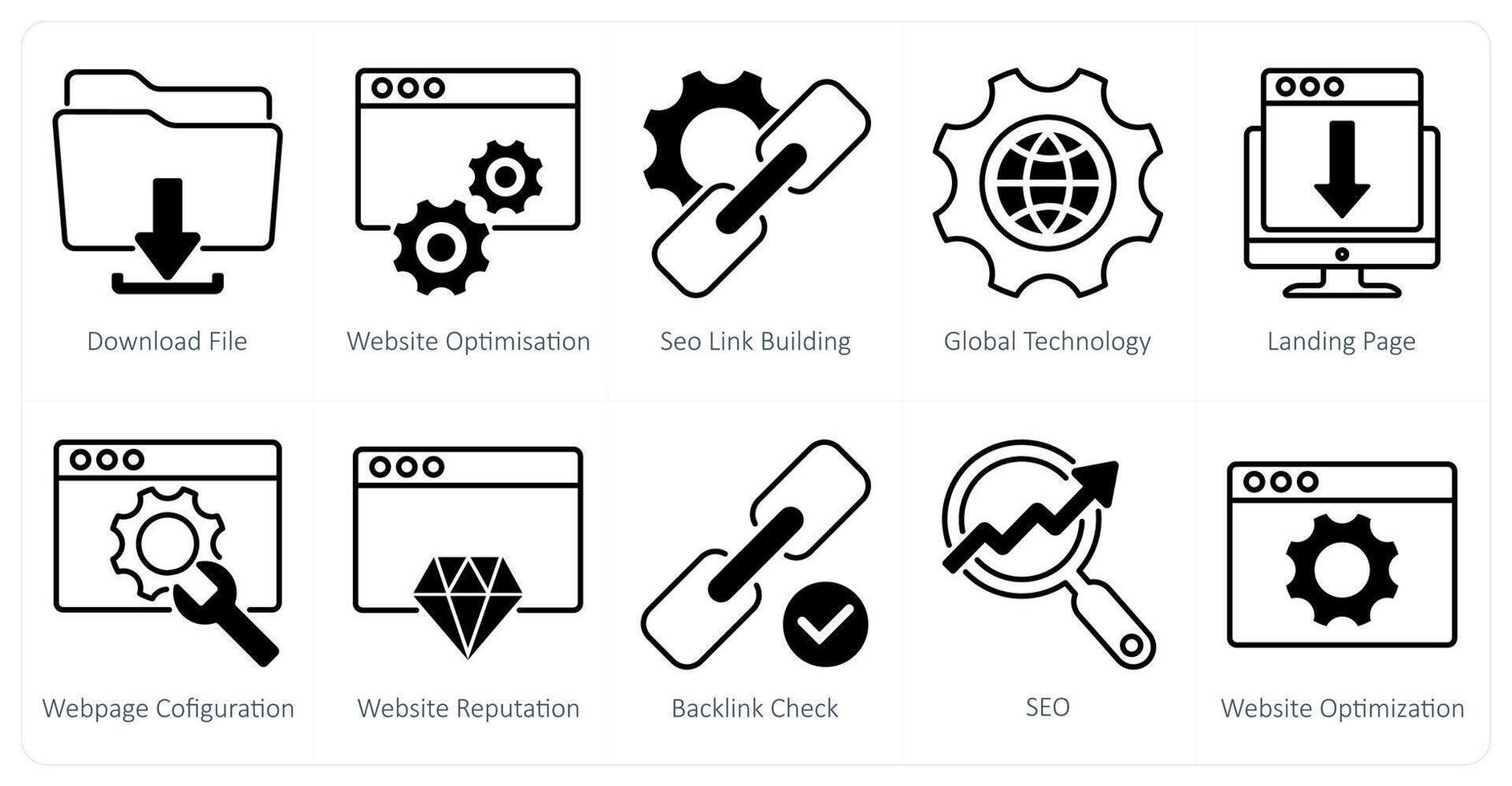 A set of 10 seo icons as download file, website optimization, seo link building Pro Vector
