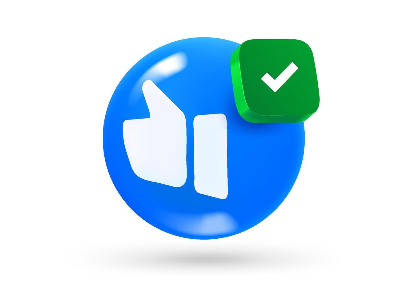 Thumbs up with checkmark icon. 3d object isolated on white background Pro Vector