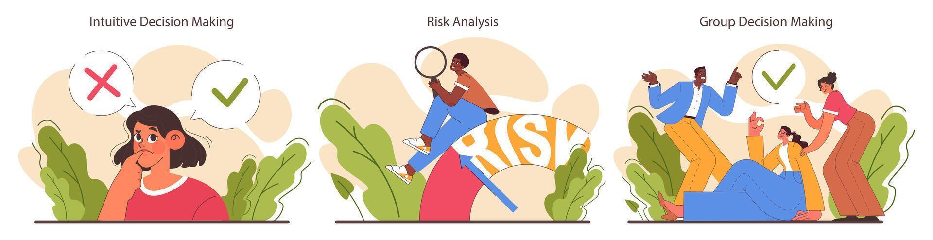 Decision-making set. Strategic thinking, brainstorming and solution research. Pro Vector
