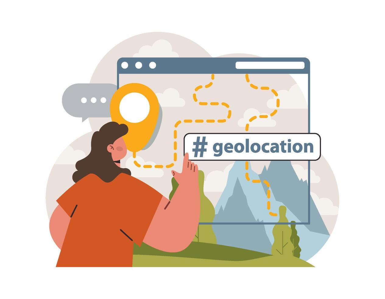 Geolocation pin, location point. Character using digital device for sending Pro Vector