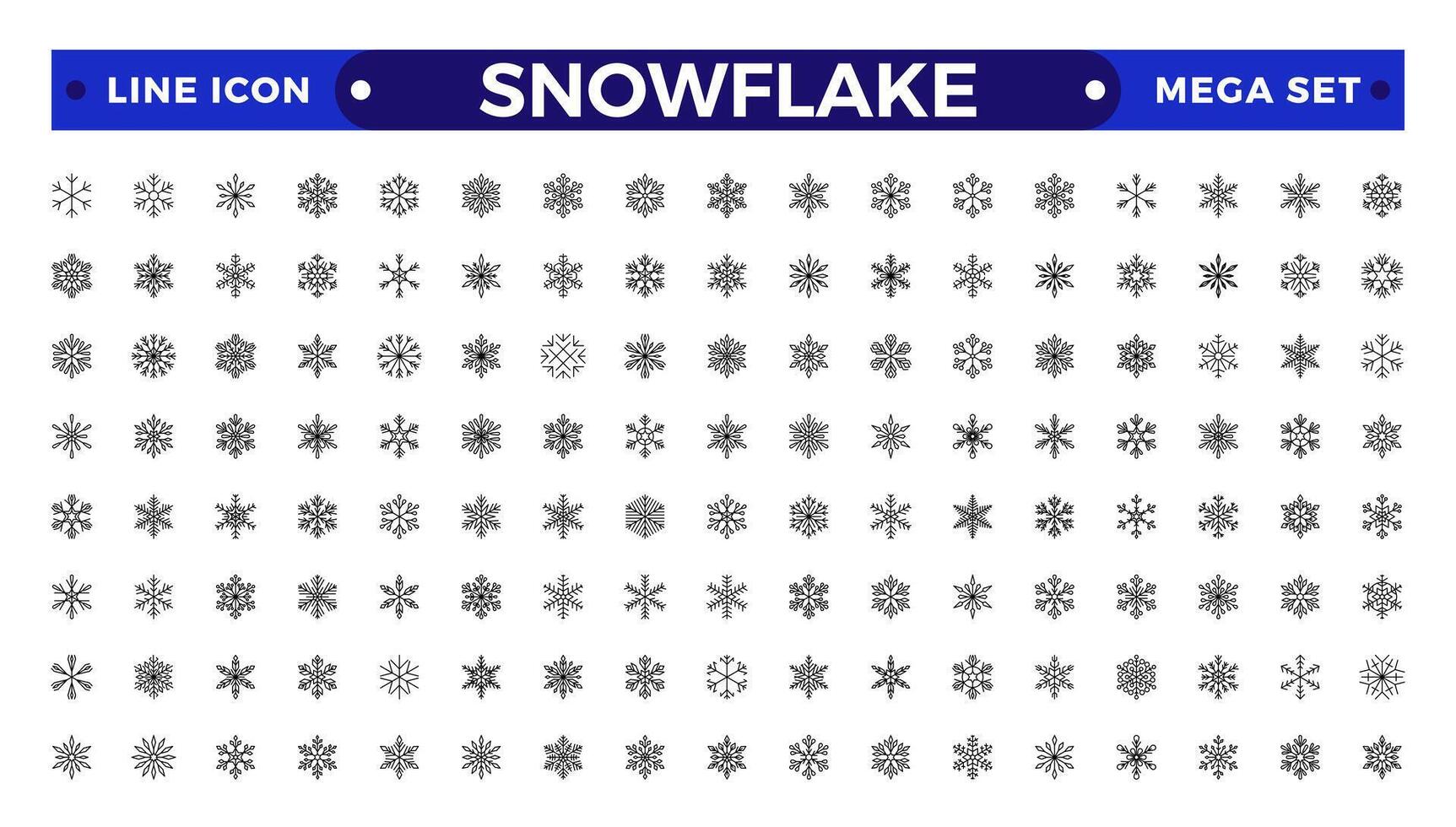 snowflakes outline icon set such as pack of simple snowflake, snowflake winter, snowflake, icons for report, presentation, diagram, web design Pro Vector