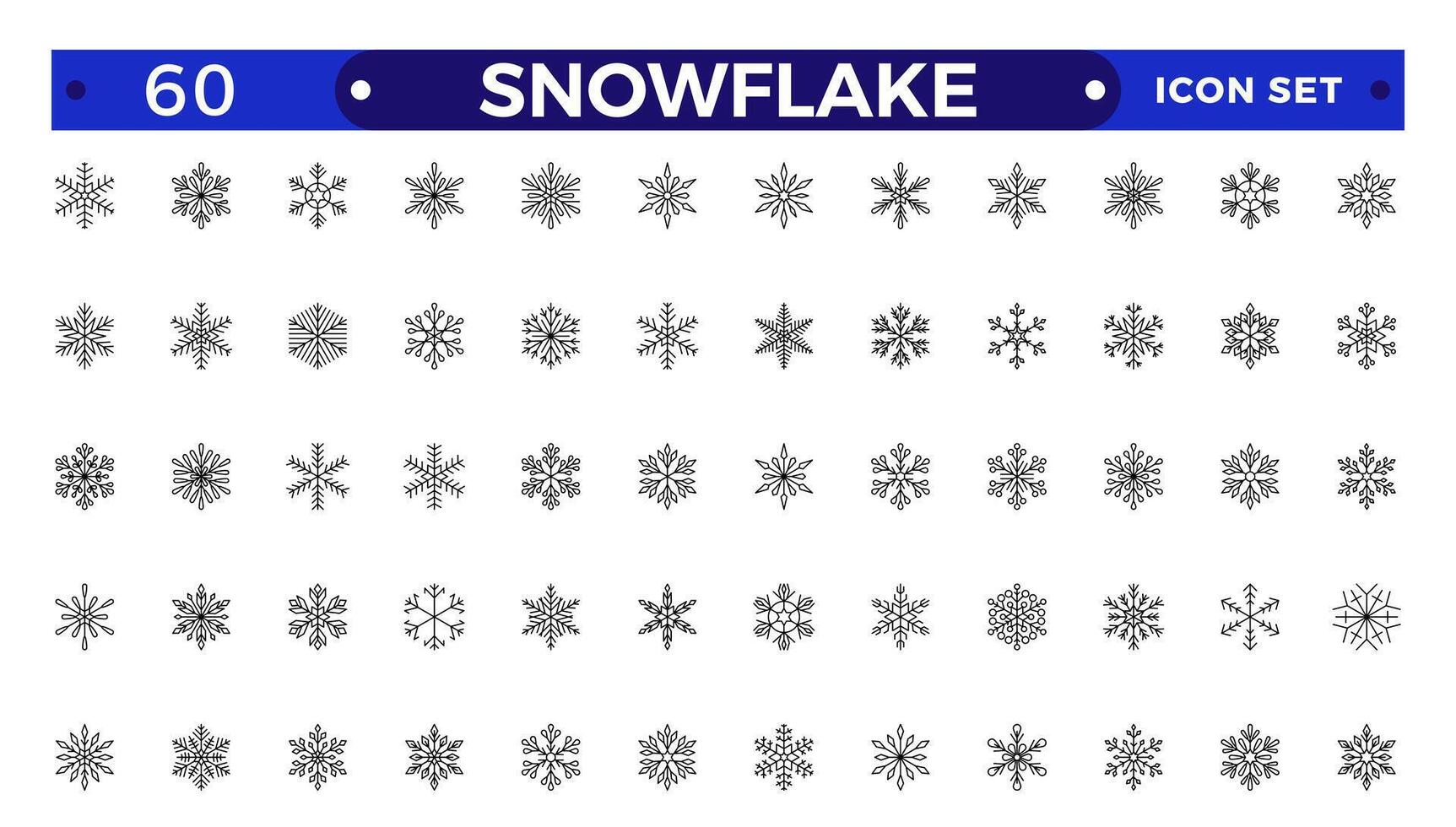 snowflakes outline icon set such as pack of simple snowflake, snowflake winter, snowflake, icons for report, presentation, diagram, web design Pro Vector