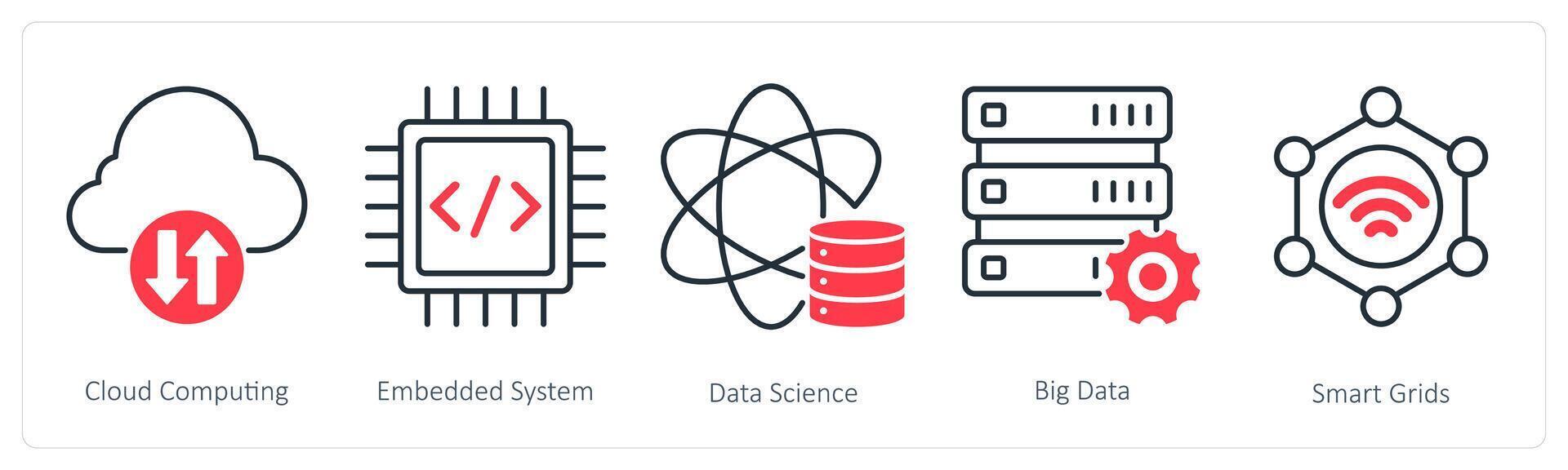 A set of 5 Industrial icons as cloud computing, embedded system, data science Pro Vector