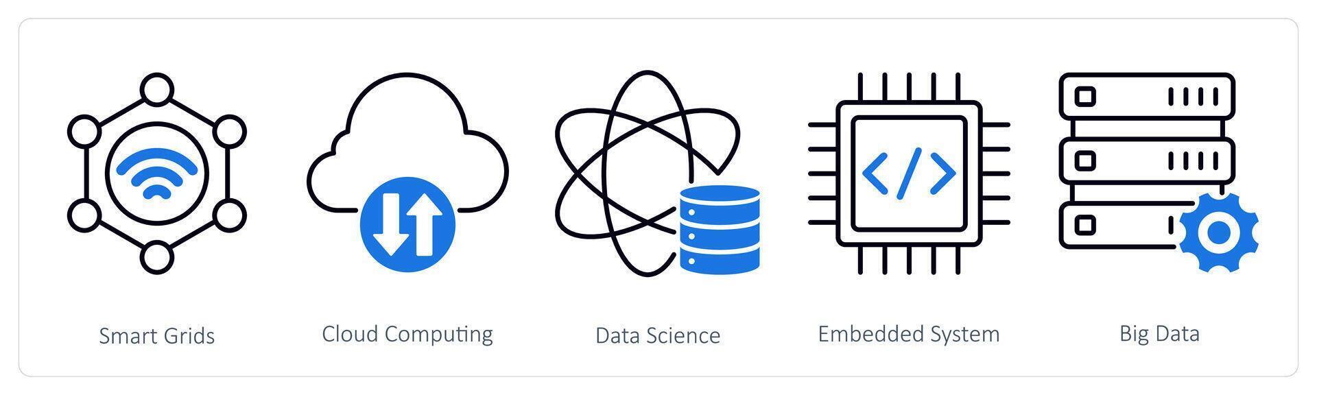 A set of 5 Industrial icons as smart grids, cloud computing, data science Pro Vector